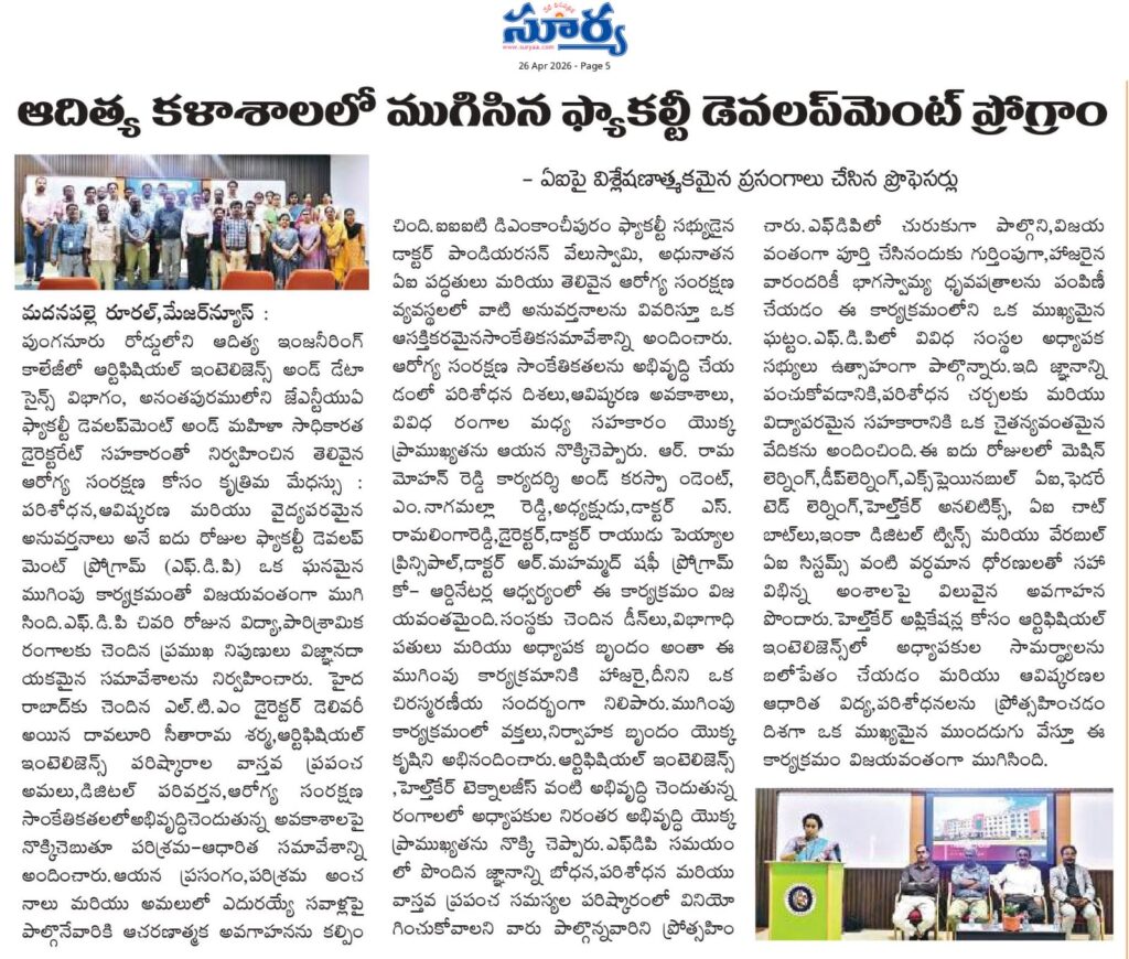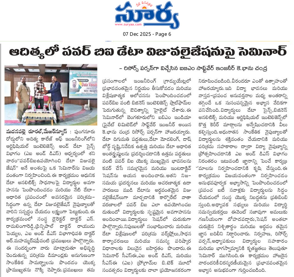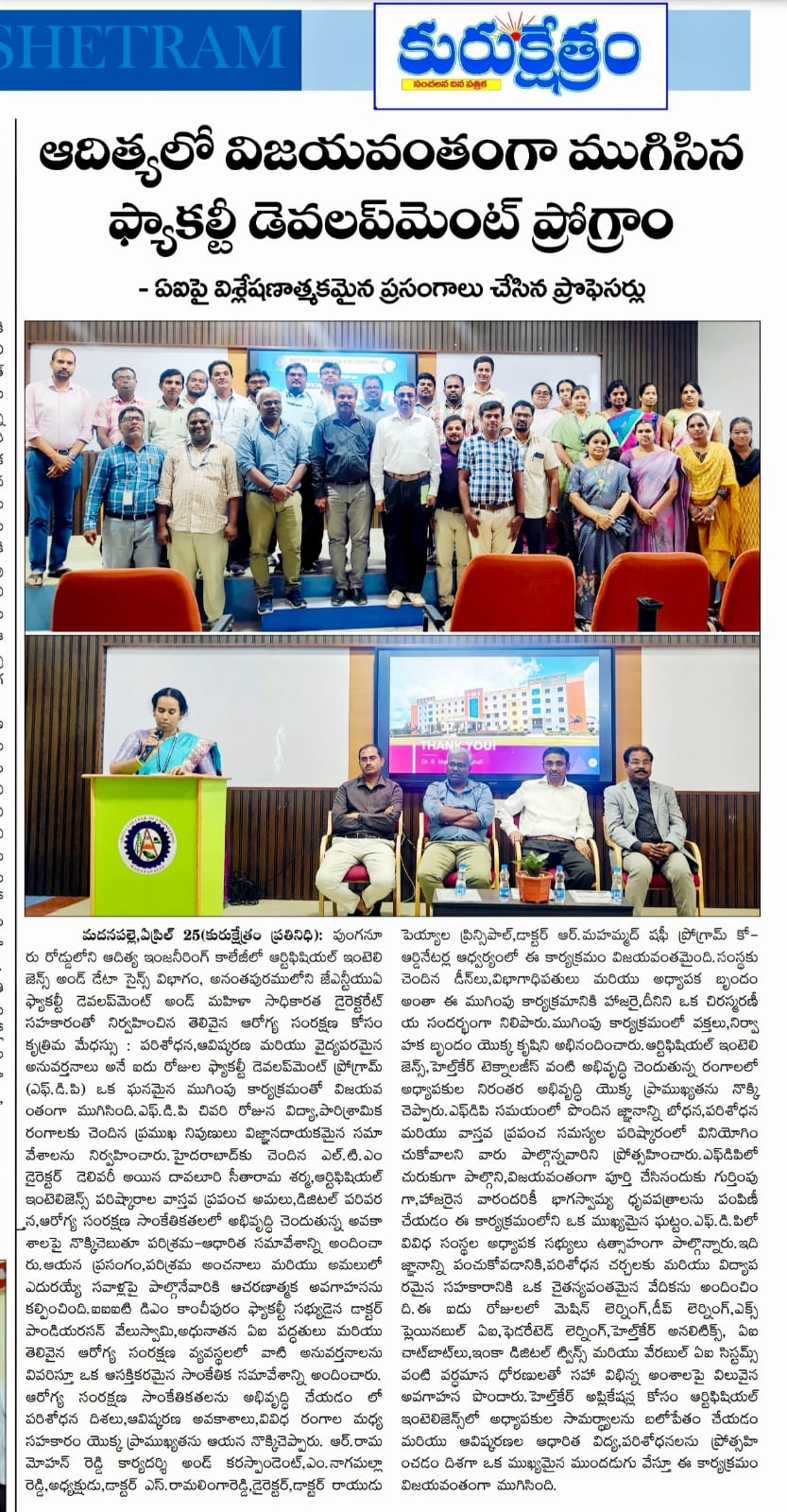 The Director Dr.S.Ramalinga Reddy, HoD-AI&DS Dr.R.Md.Shafi, Staff coordinator Mr.P.Bhaskar congratulated the Second year AIDS students for secured the second prize to the participation of ASHV-2K25 on 21.02.2025 at MITS, Madanapalle.