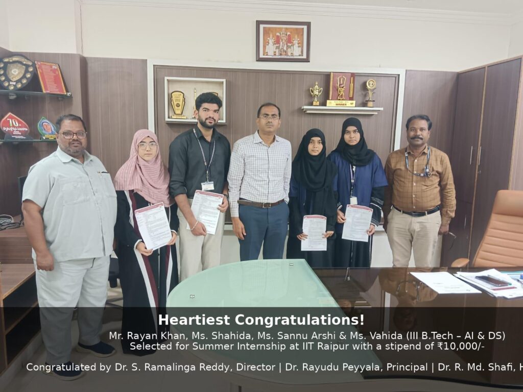 Heartiest congratulations to G. Sravani(228P1A3046),P Amrutha(228P1A3002) and C.R. Hithaisi(228P1A3014) in IV AI&DS got internship opportunity on 28-11-2025 in NYERAS EDU-TECH AND INNOVATIONS PRIVATE LIMITED , Bangalore