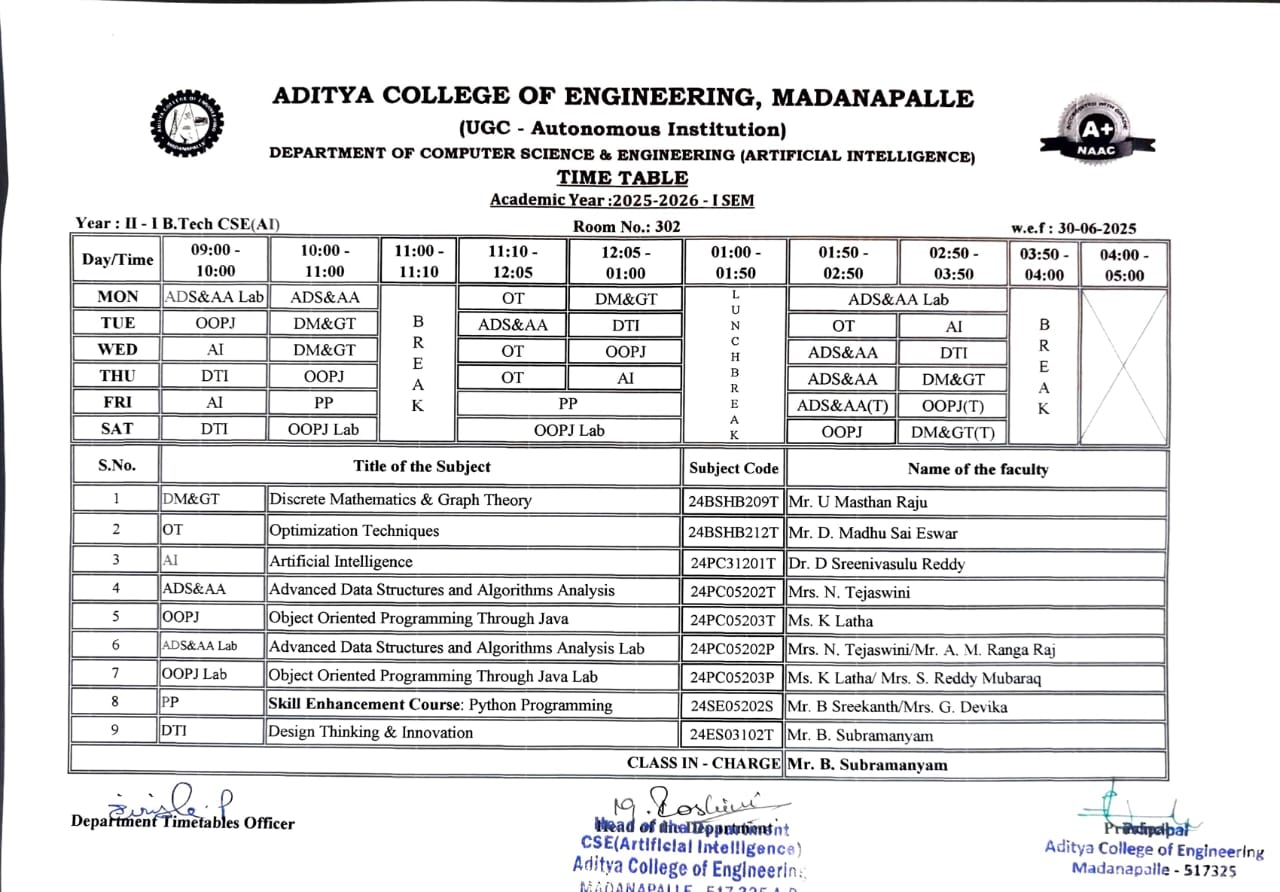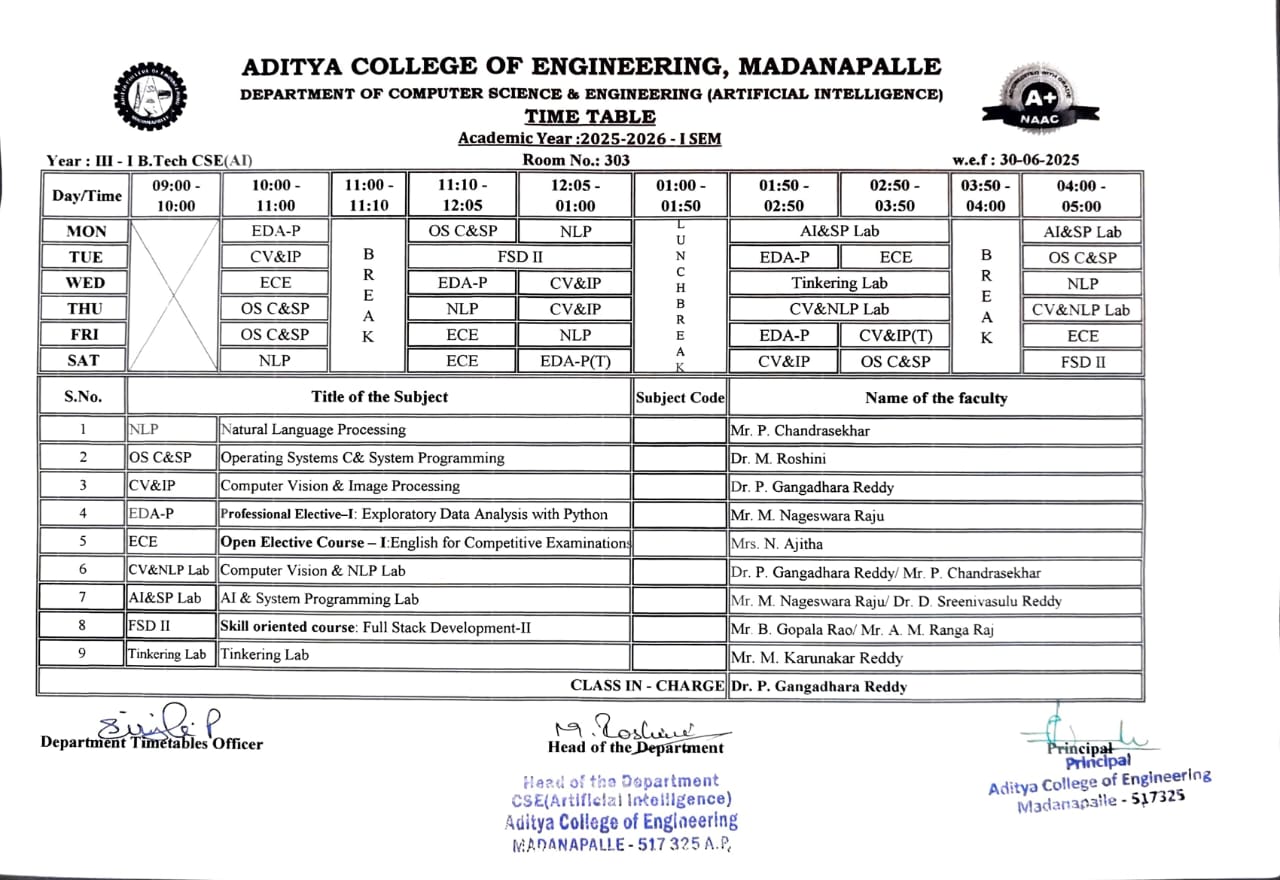CSE(AI) Time Tables for the Academic Year : 2025-26