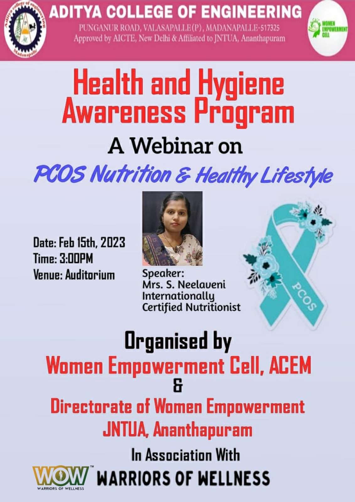 Health and Hygiene Awareness program A Webinar on PCOS Nutrition and healthy Lifestyle