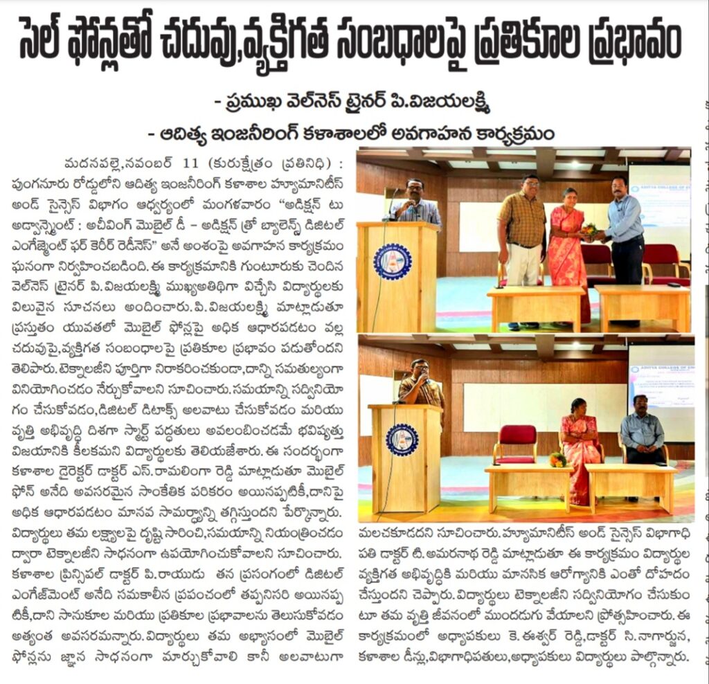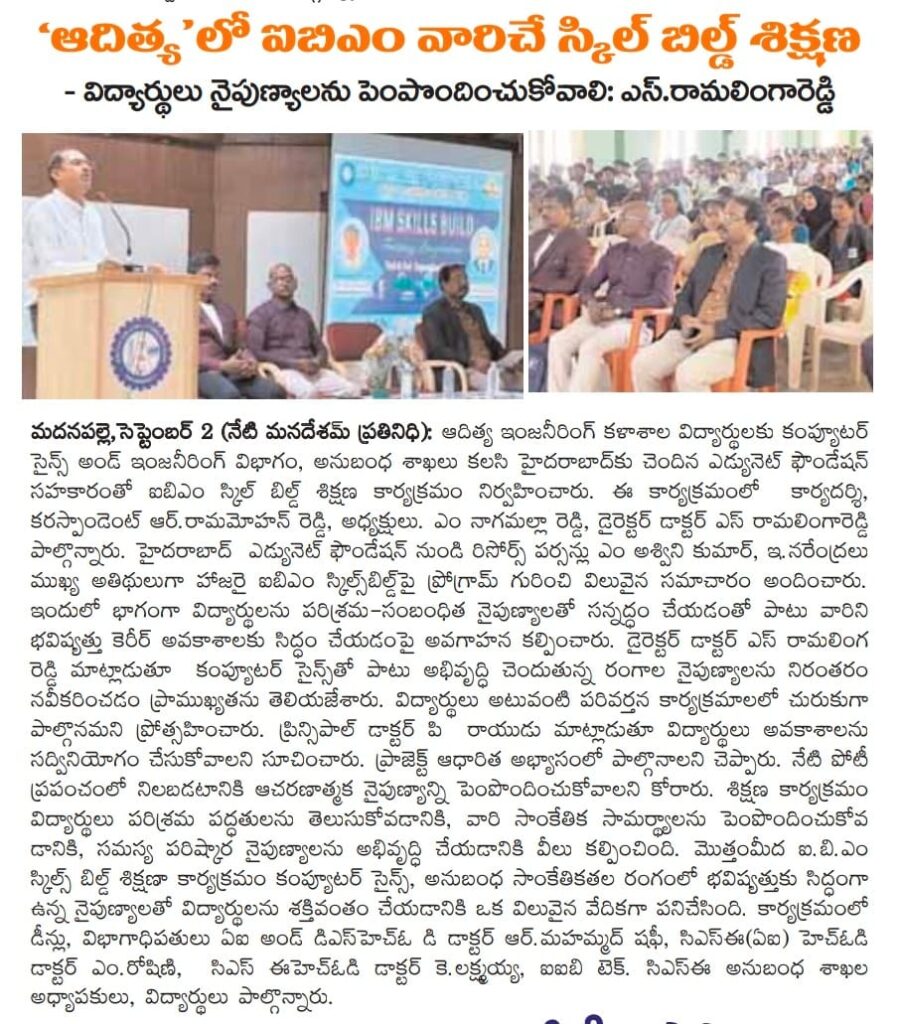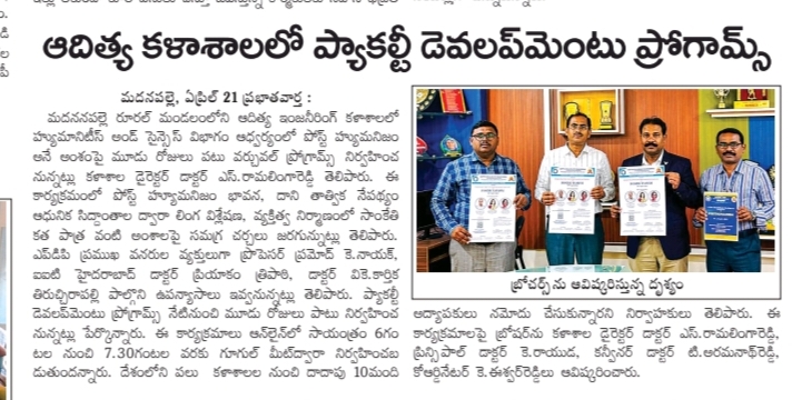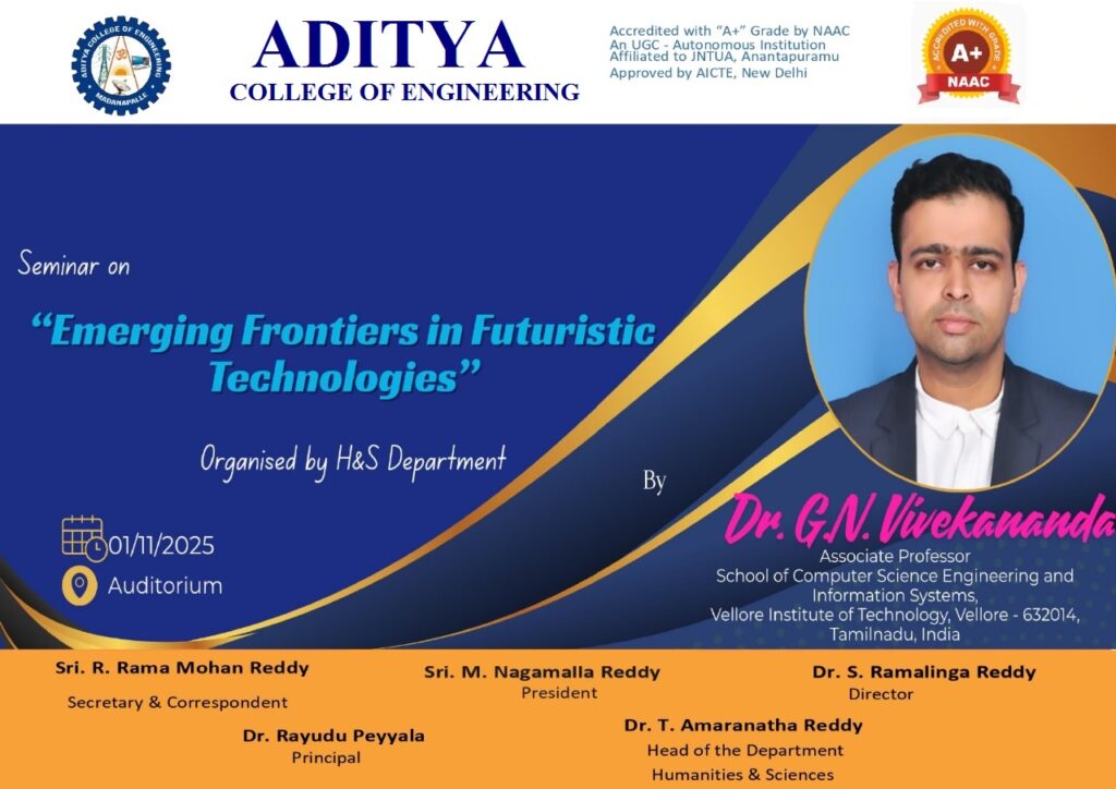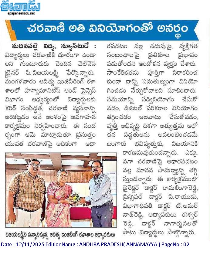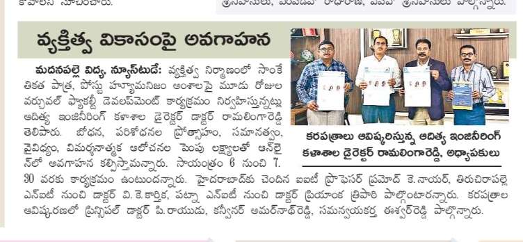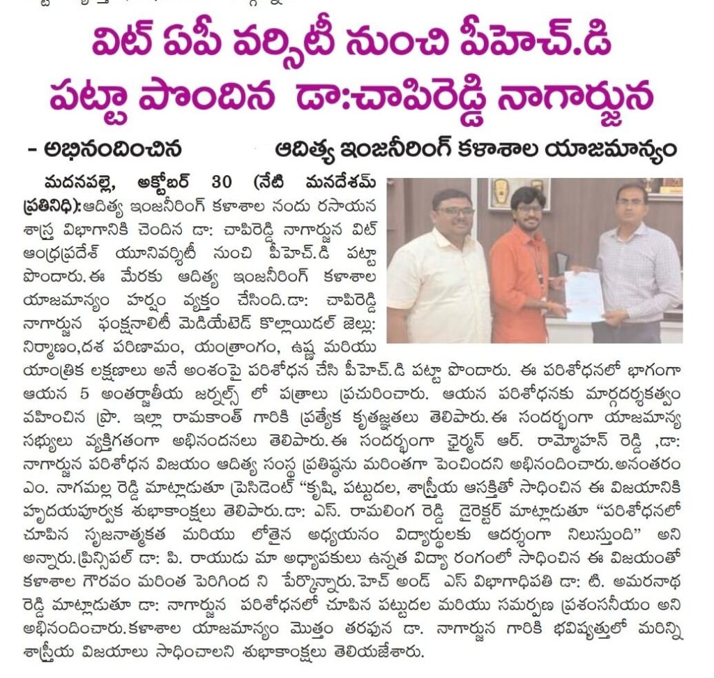 Heartiest congratulations to Dr. T. Amarnath Reddy on delivering a distinguished guest lecture at Sri Sai Institute of Technology! Your expertise and knowledge have not only enlightened the audience but have also brought pride to Aditya College of Engineering. Your achievement is a testament to the institution's commitment to academic excellence and its reputation for producing outstanding professionals. We are thrilled to see the flag of Aditya College of Engineering flourishing at Sri Sai Institute of Technology, thanks to your remarkable efforts. Your contribution to the academic community is invaluable, and we are honored to have you as a part of our institution. Please accept our warmest congratulations once again! We look forward to your continued success and achievements.