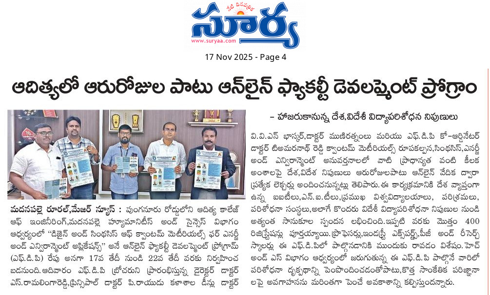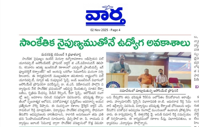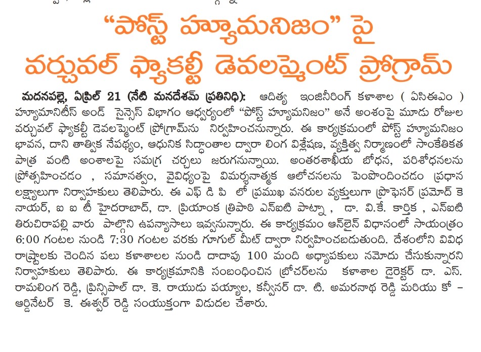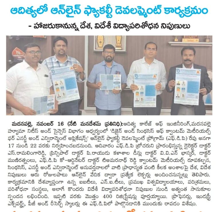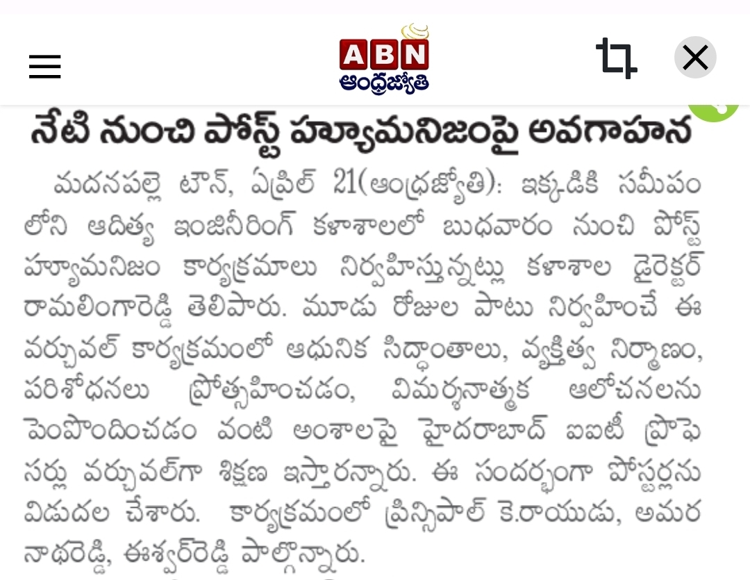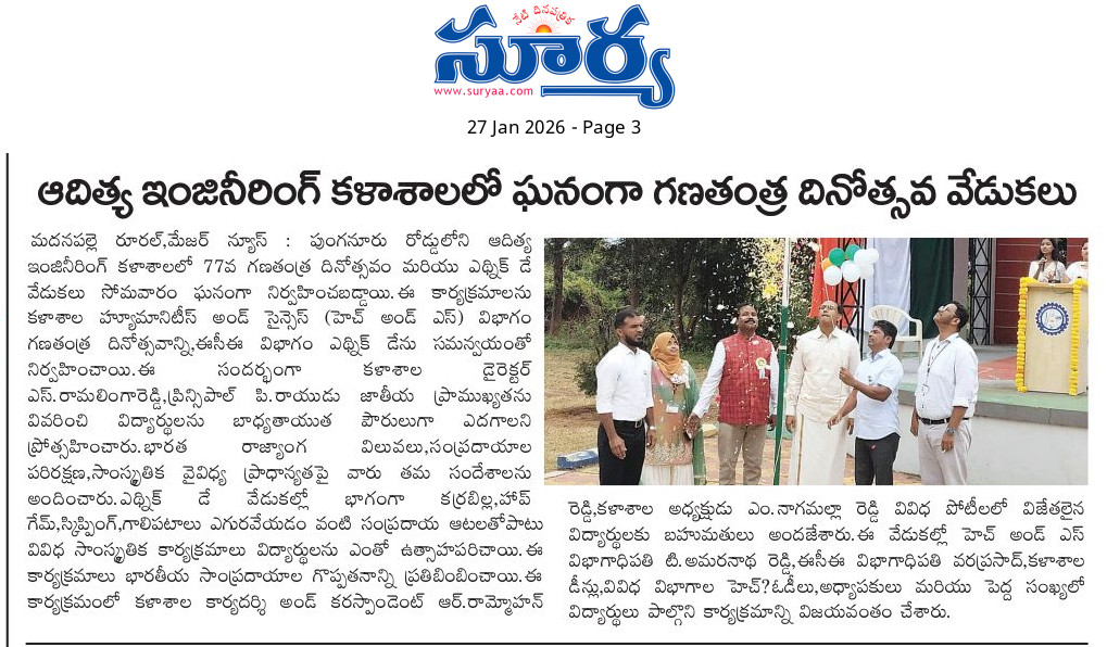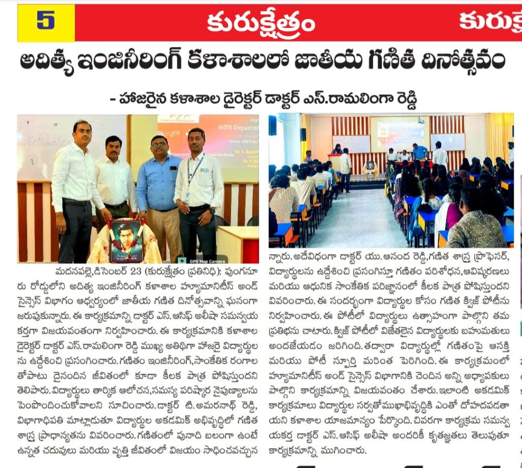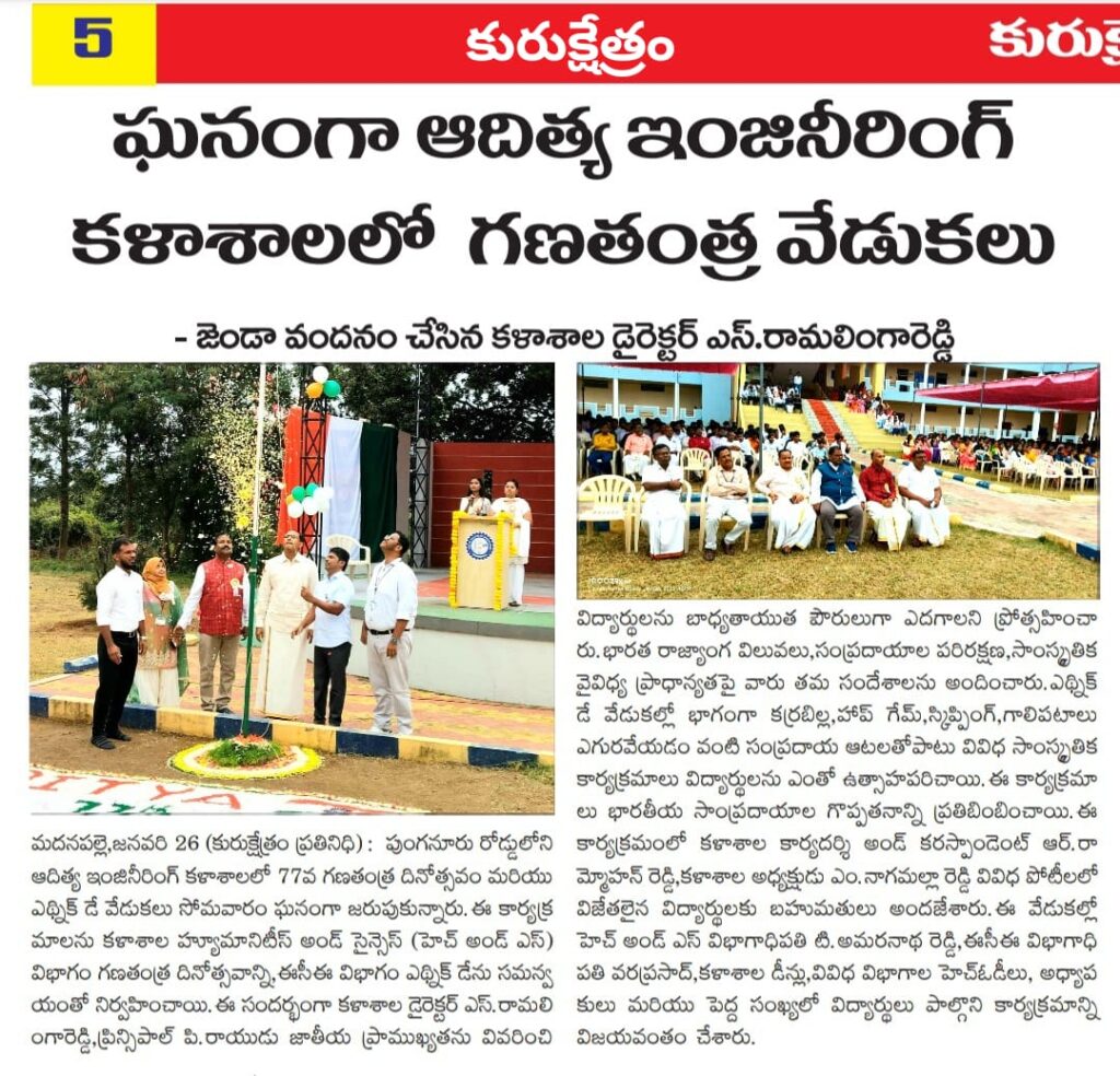 Heartiest congratulations to Dr. T. Amarnath Reddy on delivering a distinguished guest lecture at Sri Sai Institute of Technology! Your expertise and knowledge have not only enlightened the audience but have also brought pride to Aditya College of Engineering. Your achievement is a testament to the institution's commitment to academic excellence and its reputation for producing outstanding professionals. We are thrilled to see the flag of Aditya College of Engineering flourishing at Sri Sai Institute of Technology, thanks to your remarkable efforts. Your contribution to the academic community is invaluable, and we are honored to have you as a part of our institution. Please accept our warmest congratulations once again! We look forward to your continued success and achievements.