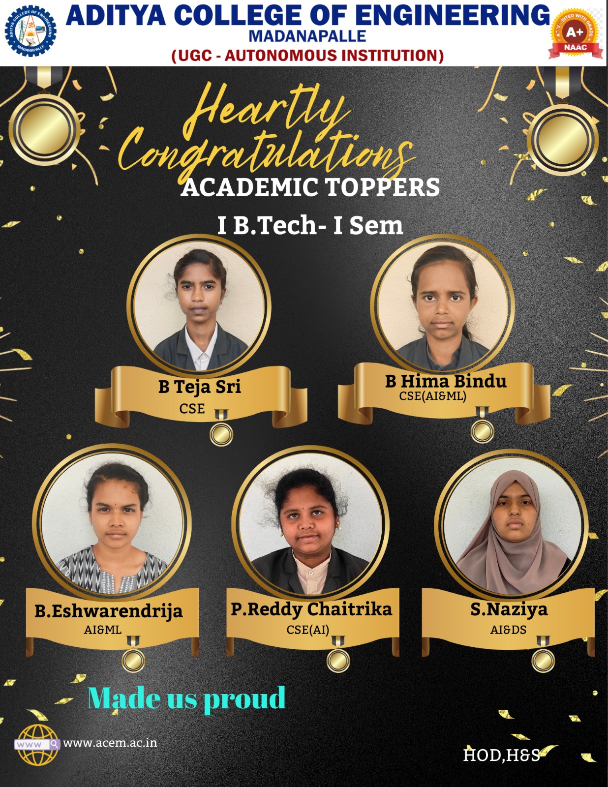 Congratulations to Our ACEM first BTech students got first prizes (Maths, physics, chemistry) and second prize in English at Sai Sankethika 2k25(Symposium) at SSITS, rayachoty on 10.04.2025